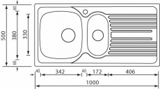 Materiál : nerezová oceľ 18/10 Rozmery : 1000 x 500 x 160 mm Vanička : 342 x 380 x 160 mm Skrinka : od 600 mm Príslušenstvo : - sifón 3,5" s prepadom - úchytky - sifón s odbočkou na umývačku riadu