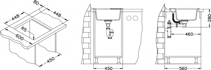 určený na montáž zhora pracovnej dosky