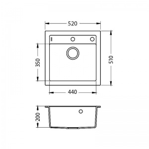 Rozmer : 520 x 510 x 200mm Vanička : 440 x 350 x 200 mm Spodná skrinka : 500 mm Farebné prevedenie : G91 black Detailný popis: V cene : - drez - úchytky - komplet sifón s excentrickým otváraním - s odbočkou na umývačku