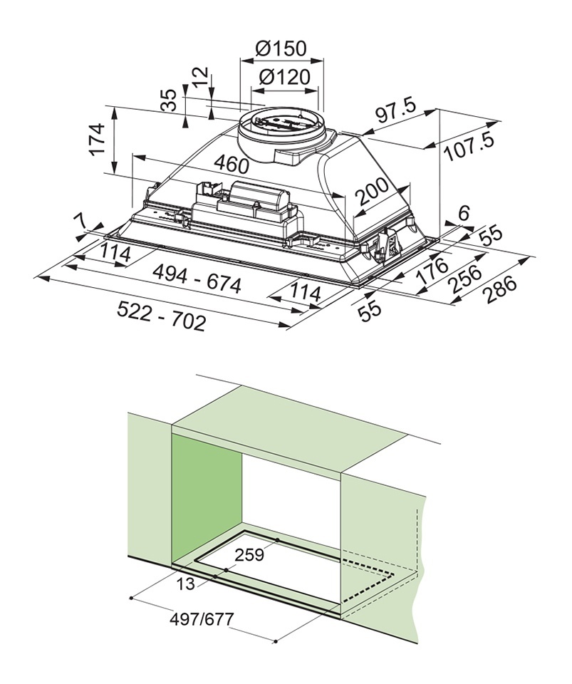 nergetická trieda : D Montážna šírka : 52,2 cm Prevedenie : čierny - Posuvné prepínače - 3 Stupne výkonu Osvetlenie : LED žiarovky 2 × 4 W, 4000 K Výkon : 300 m3 /h (Podľa normy EN 61591) Max. hlučnosť : 66 dB(A)re1pW (Podľa normy EN 60704-3) Možnosť dokúpiť : - okrúhly pachový filter s aktívnym uhlím UF 20 (112.0564.564 ) cena 17 EUR vr. DPH