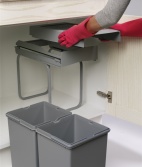 Vonkajšia skrinka : 300 mm Farba : biela alebo šedá Obsah :2 x 14 l Popis : ručny, výsuvný s montážou o dno skrinky